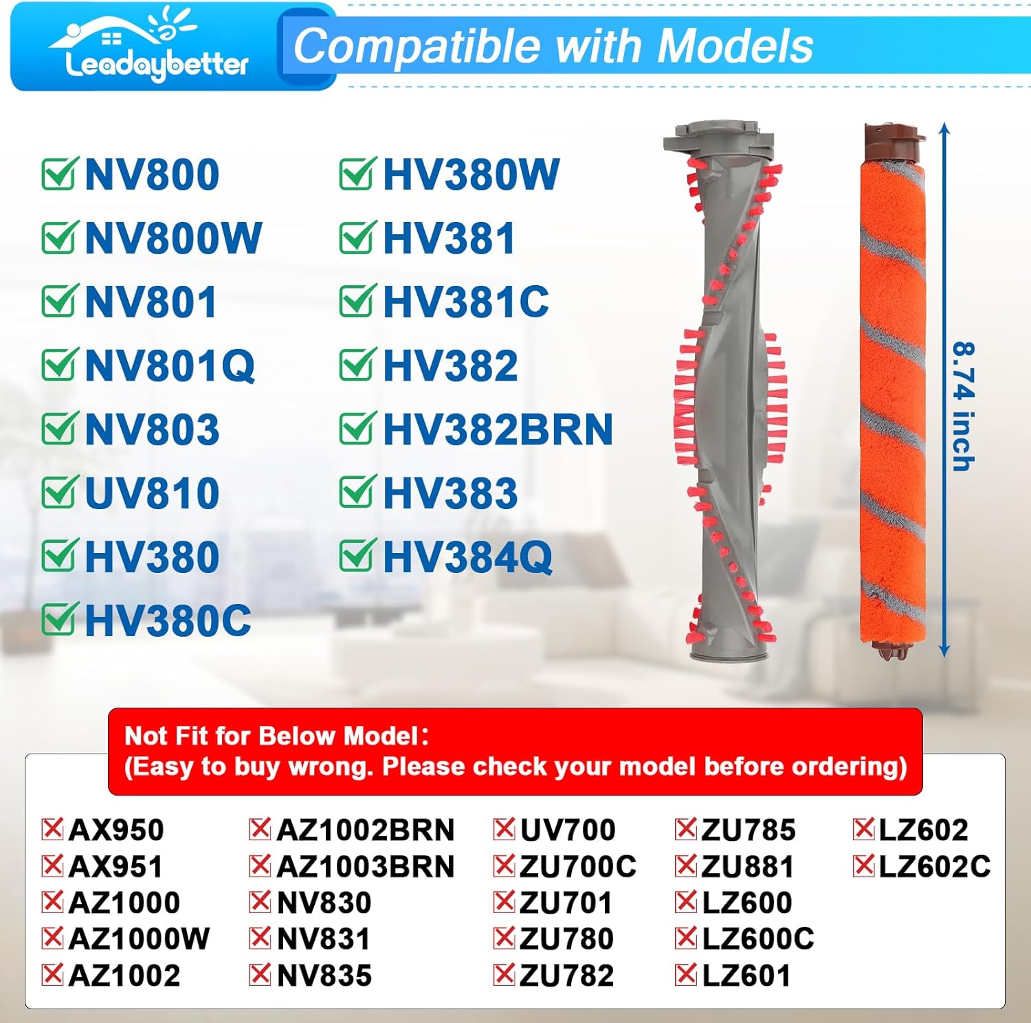 Includes both soft brush roller and bristle brush roller, comparable to OEM parts #1148FT800 & #400FFJH380